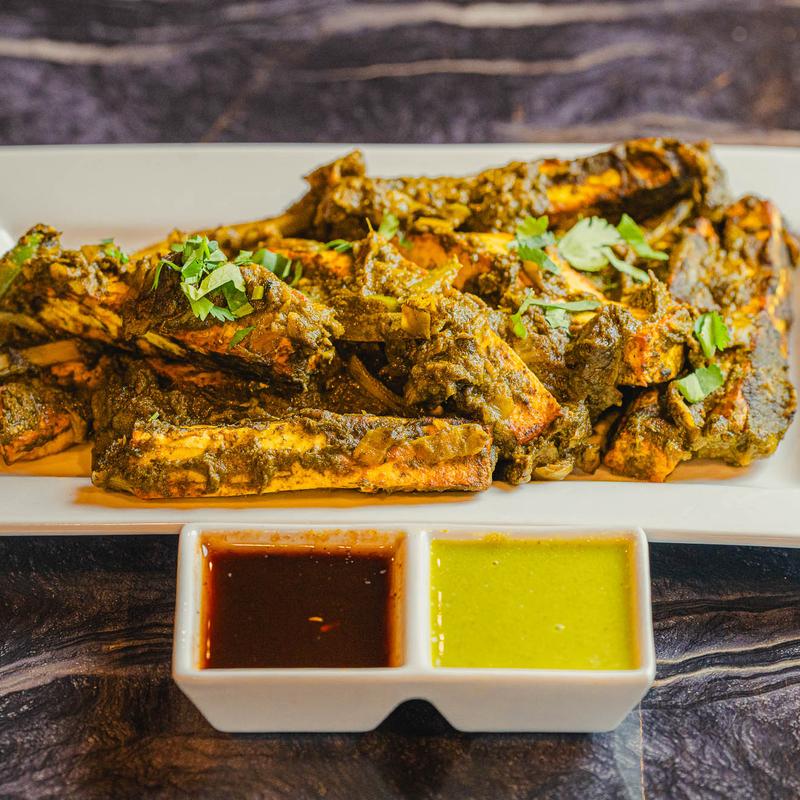 Indian cottage cheese marinated in a vibrant green paste of coriander mint and spices and cook in tandoor.